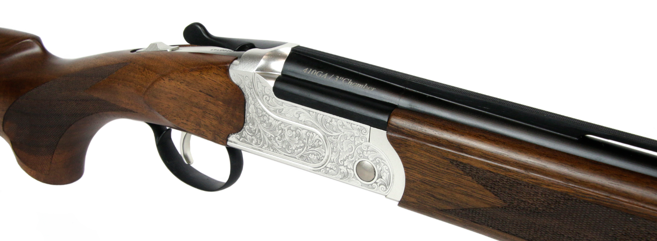 The quality of the engravings etched into both sides and the underside of the receiver are attractive scroll engravings. Based on popular European leaf patterns the engravings add a level of sophistication to what is a competent range of game guns. Completing the package is a tried and tested mechanism that features many of the options the modern shooter desires. Based on a single selective trigger design the Sceptre is fitted with a tang mounted safety, ejectors and a set of chrome lined multi choke barrels.