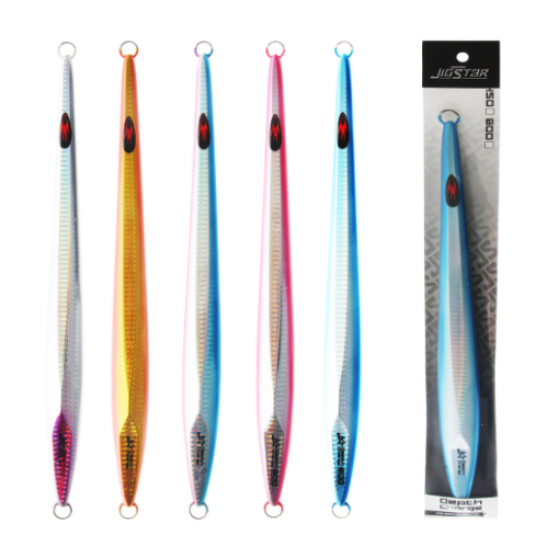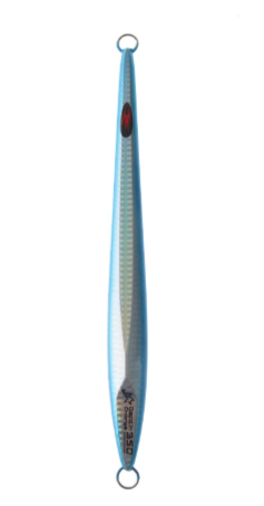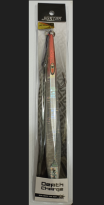 are long, tail weighted jigs with narrow streamlined neck graduating into a bigger heavy section near its tail. Due to its shape, the depth charge has little action but descends very quickly allowing you to hit small deep water targets successfully. Retrieve it quickly to produce much action. The Depth Charge works best with a fast, short jerk action to entice the bite and suits deep water.