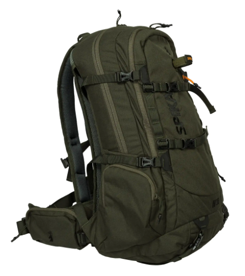 The Spika Drover II 35L Pro Pack is your ideal companion for one-day adventures. Be it hunting, fishing, hiking or any outdoor adventure the Pro Pack will allow you ample storage and configuration options to suit your needs. Designed for durability and functionality the Pro Pack has 2 main large storage zones with 2-way zippers, a front quick-access pocket marked with an orange zip toggle and side pockets. This gives you plenty of ways to choose where to store all your gear from additional clothing layers, camera equipment, optics, first-aid, food, water and other accessoriesThe Pro Pack is exceptionally comfortable thanks to its floating air-mesh harness providing enhanced ventilation while the sturdy waist belt and load-stabilising frame guarantee exceptional comfort no matter the duration of your adventure. The exterior of the backpack is made from a durable 500 denier, DWR treated nylon providing protection from the elements.