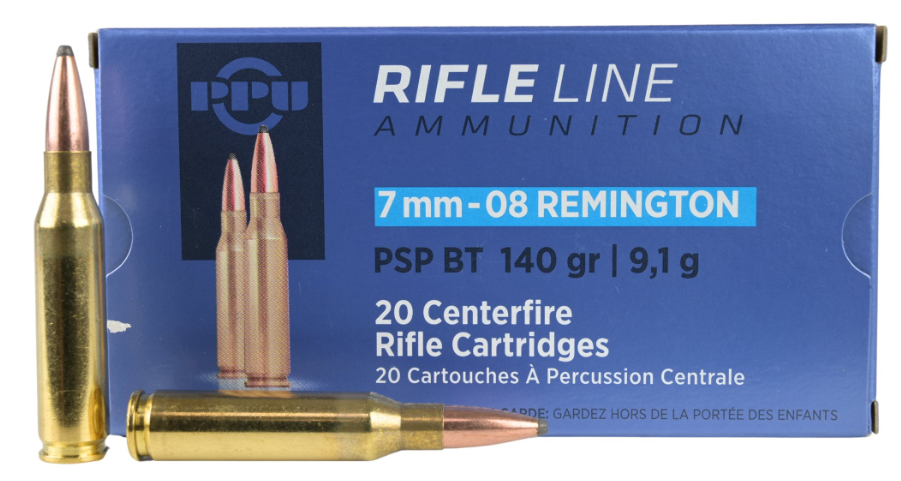 • Caliber: 7mm-08 Remington• Bullet Weight: 140 Grains• Bullet Style: Pointed Soft Point Boat Tail• Case Type: Brass• Muzzle Velocity: 2854 fps• Muzzle Energy: 2537 ft. lbs.