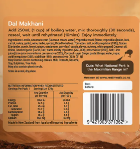 Cooking Instructions: Add 250ml (1 cup) of boiling water, mix thoroughly (30 seconds), reseal, wait until rehydrated (10 mins). Enjoy immediately.