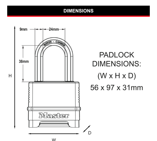 EXCELL COMBINATION LOCK 38MM SHACKLE - Locksmithing : King & Henry -