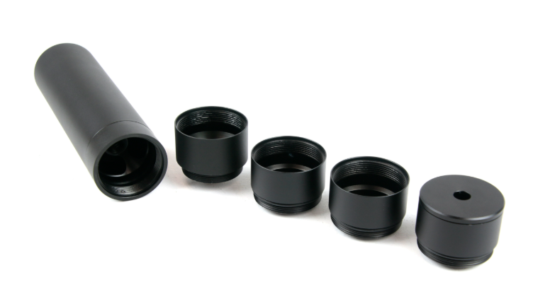 The modular design allows you to customise the performance to your specific requirements by increasing or decreasing the number of baffles. One or both of the two middle threaded baffles can be removed to create a lighter silencer, or simply screw in additional threaded baffles to create a quieter silencer.
