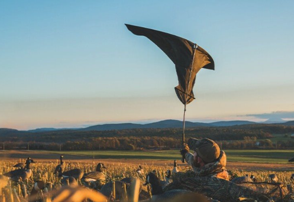 Command the attention of overhead geese into your firing zone with the Game On handheld goose flag. Nearby geese will be attracted to the wide-span flapping motion from the comfort of your mai mai. Simply fold out the wings, hold upwards and manually flap back and forth to create a realistic wing motion. Wings fold down for easy packing.