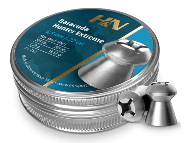 Heavy and exceptionally accurate, the Baracuda Hunter Extreme from H&N goes beyond the traditional hollowpoint, The four deep, cross-shaped notches increase the 'mushrooming' effect considerable and therefore, increases the transfers of energy to the target for much greater knock-down power.