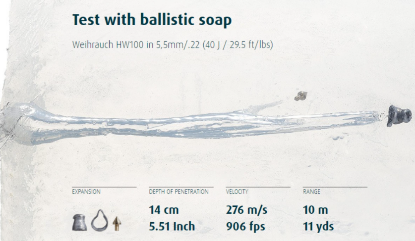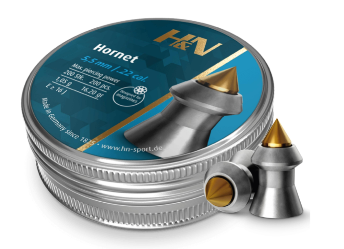 Medium-weight, accurate hunting pellet for medium ranges. High impact and penetration. Aerodynamic design through metal tip. Controlled expansion. Smooth with brass tip.