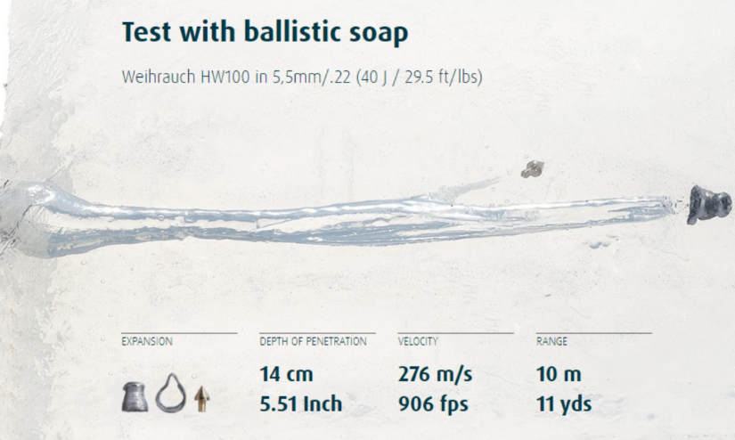 Medium-weight, accurate hunting pellet for medium ranges. High impact and penetration. Aerodynamic design through metal tip. Controlled expansion. Smooth with brass tip.