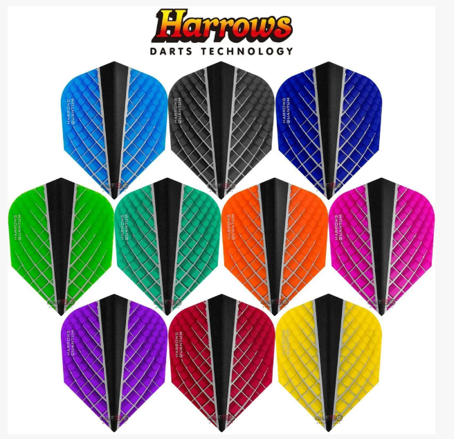 Harrows Quantum-X flights have been developed using their revolutionary 3D UV laminate and feature a colourful, transparent wing display. Combined with their new ultra-strong 100 micron material, they give players dart flights both added strength and unrivaled beauty.
