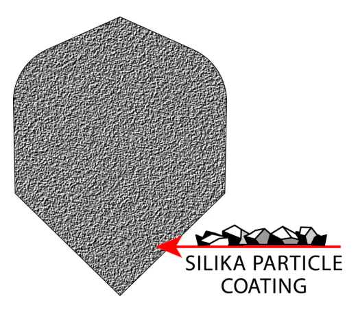 Similar to sandpaper, the surface of the flight is coarse which increases surface area. When thrown, the increased surface area reduces the speed of the dart in-flight and stabilises the dart’s flight path.