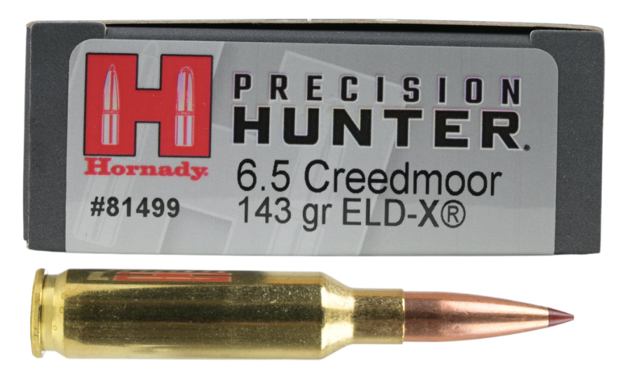 • Cartridge: 6.5 Creedmoor• Grain Weight: 143 Grains• Quantity: 20 Round• Muzzle Velocity: 2700 Feet Per Second• Muzzle Energy: 2315 Foot Pounds• Bullet Style: Polymer Tip• Bullet Brand And Model: Hornady ELD-X• Lead Free: No• Case Type: Brass• Primer: Boxer• Corrosive: No• Reloadable: Yes• G1 Ballistic Coefficient: 0.62• Sectional Density: 0.293• Test Barrel Length: 24 Inches• Velocity Rating: Supersonic• Country of Origin: United States of America