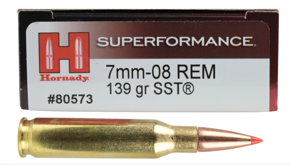 Loaded with Hornady's InterLock Super Shock Tip (SST) bullet, this round combines proven Hornady performance with a higher ballistic coefficient than available with most hunting bullets. The sharp, pointed polymer tip creates a faster, flatter shooting bullet. With its one-piece core and jacket strengthened in critical areas, the SST delivers much more controlled expansion and superior weight retention than other tipped bullets. Featuring Hornady's trade mark InterLock ring system, this bullet's core and jacket remain locked solid during expansion, creating massive wound channels.