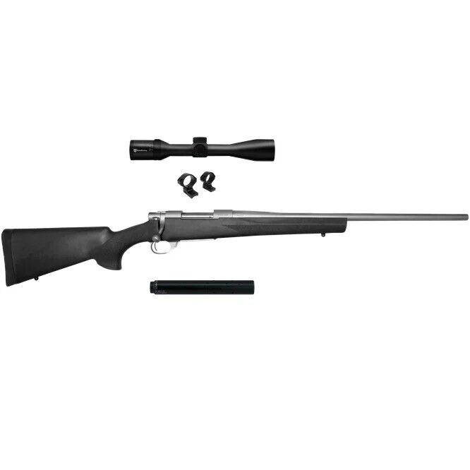 HOWA 7MM-08 STAINLESS 20" L/W SCOPED SUPPRESSED KIT BLACK POLYMER STOCK W/ CASE - Hunting-Firearms : King & Henry -