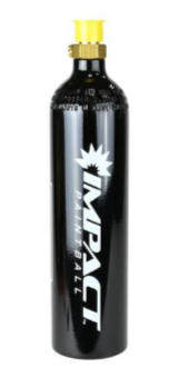 Impact Paintball refillable 12oz c02 bottle for paintball guns. will allow to roughly 350 shots in full capacity in most playing conditions.• Burst rupture disk installed for safety and pin valve to fill and go!• Aluminum cylinder This rupture burst disk nut secures a small metal disk which is designed to burst and release pressure if the pressure inside the bottle becomes too high. This part is replaceable. The most common cause of excess pressure in CO2 bottles is that the bottle has been left in the sun. We advise to not to do this to help preserve your bottle.