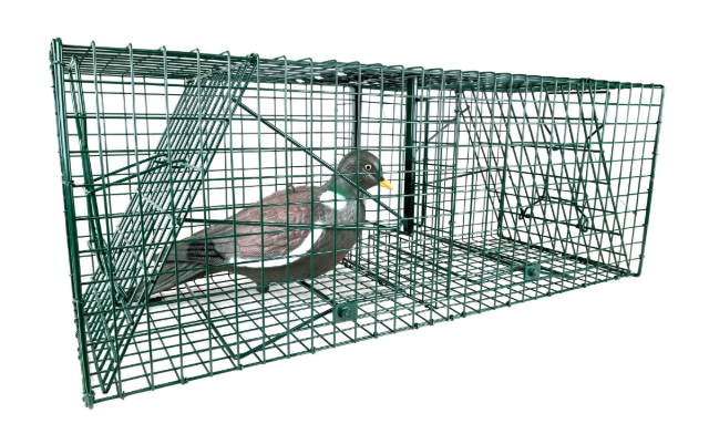 The Outdoor Outfitters Bird Trap Cage with Double Doors and Mirror is an effective tool for the safe and humane live capture of birds like magpies and pigeons, making it an ideal solution for bird pest control. Its twin-cage system allows you to catch multiple birds at once, saving both time and money.