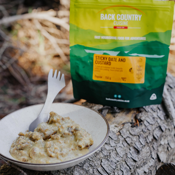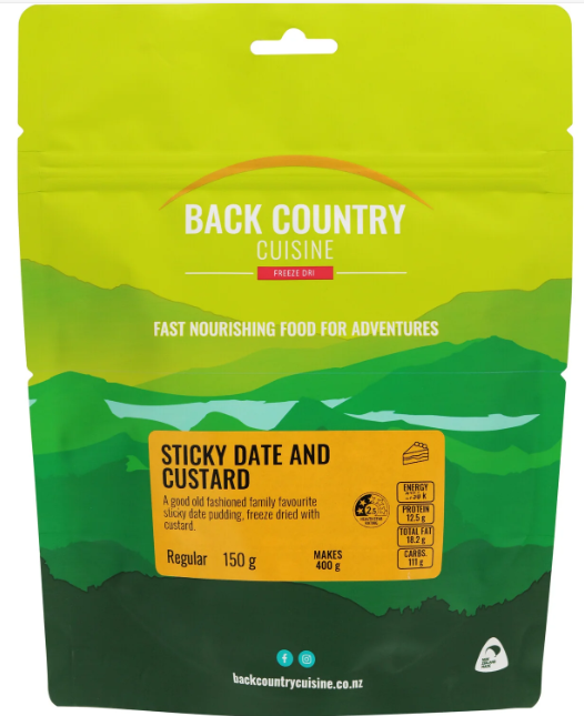 This dessert is light to carry and provides tasty, fast nourishing food for adventure by adding boiling water. Enjoy a good old fashioned family favourite sticky date pudding, freeze dried with custard.