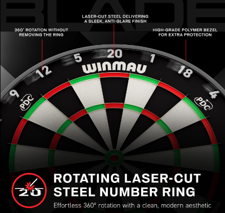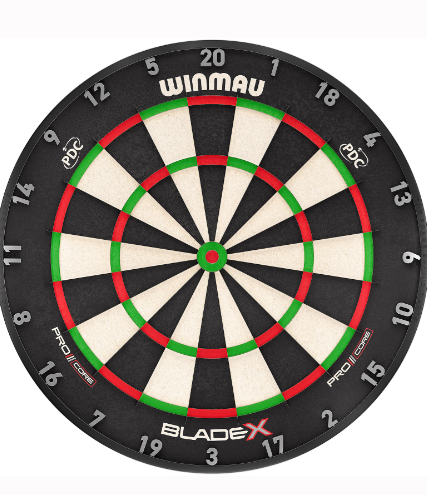 The most advanced dartboard in the world and the Official Dartboard of the PDC, the Blade X is engineered to deliver elite performance and maximum scoring consistency at the highest level. Featuring patented Pro Core Technology and Blade X’s ultra-slim precision angled wiring, it delivers an exceptionally consistent and responsive playing surface with superior dart penetration, reduced bounce-outs, and outstanding self-healing performance. Finest-grade African sisal is bonded with carbon fibre to a premium layered hardwood backboard, creating the deepest sisal bed ever produced and setting a new benchmark for durability and consistency. Finished with a rotating laser-cut number ring and precision mounting system, Blade X is built for players who demand performance with every throw.