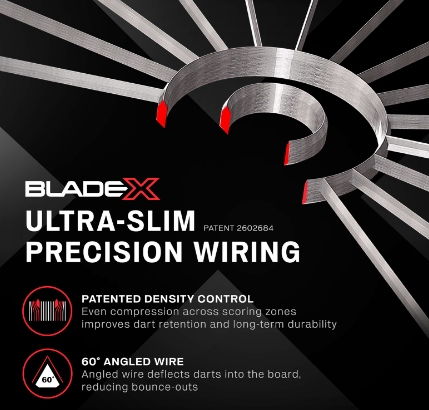 • Angled ultra-slim precision wiring increases scoring area and guides darts into the target