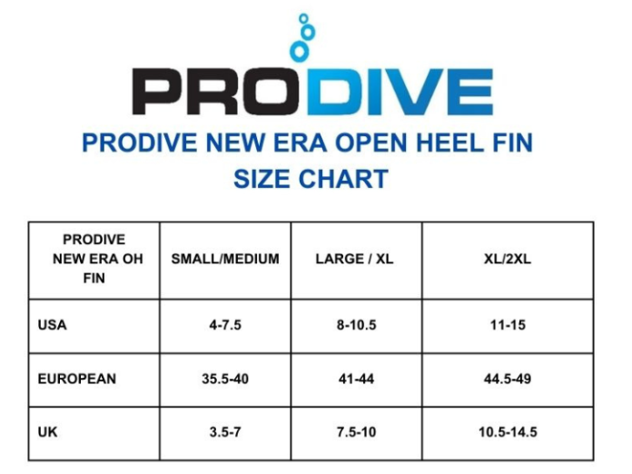 The Prodive New Era Open Heel Fins are designed for Divers of all levels . Made of silicone and hard plastic, the pre-shaped fin blade ensures a timed position at the fin kick, while the Super Channel blade creates extra pressure for good propulsion.The Sling straps are developed to provide the diver with a quick and comfortable fit, even when wearing dry suit boots, gloves, while standing and whereas the space for getting dressed is limited.
